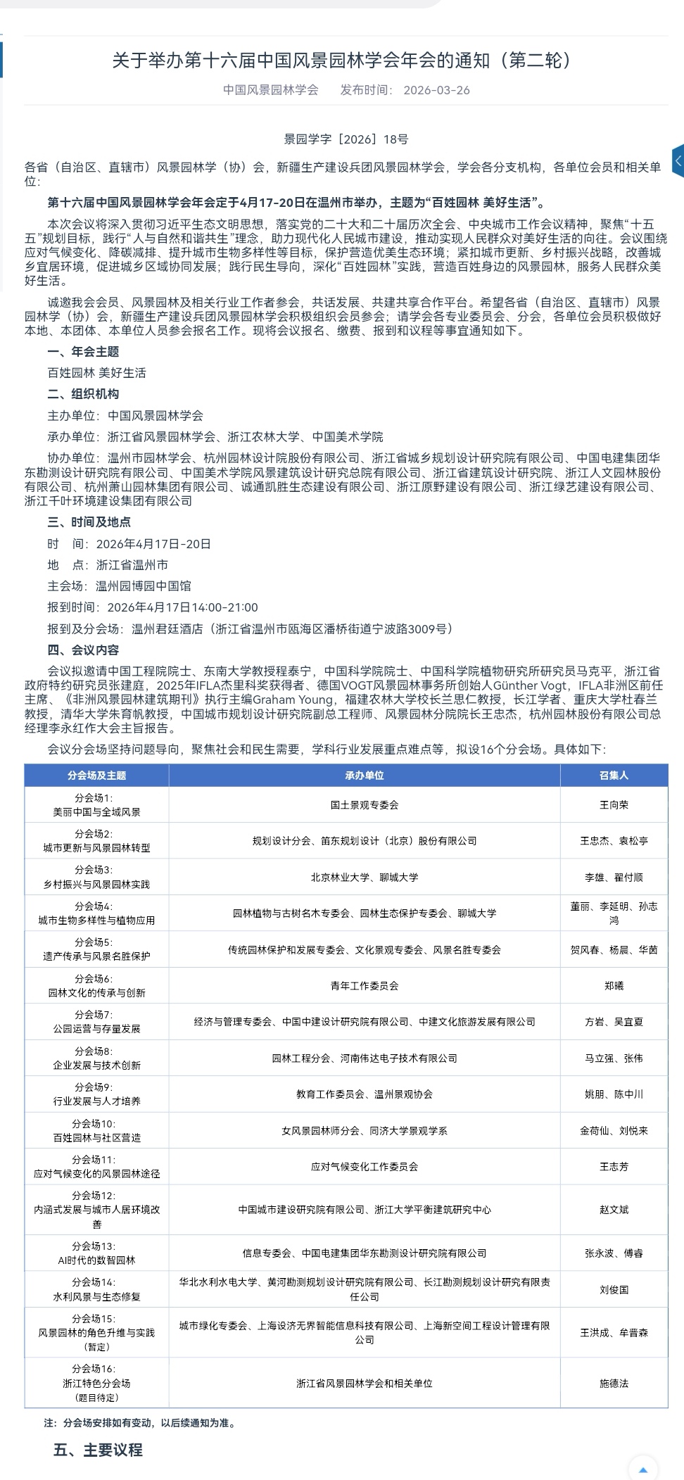 转发《关于举办十六届中国风景园林学会年会的通知(第二轮)》的通知